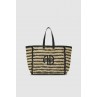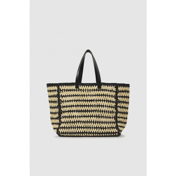 Bolsa feminina Anine Bing Small Rio Tote preta listrada bege